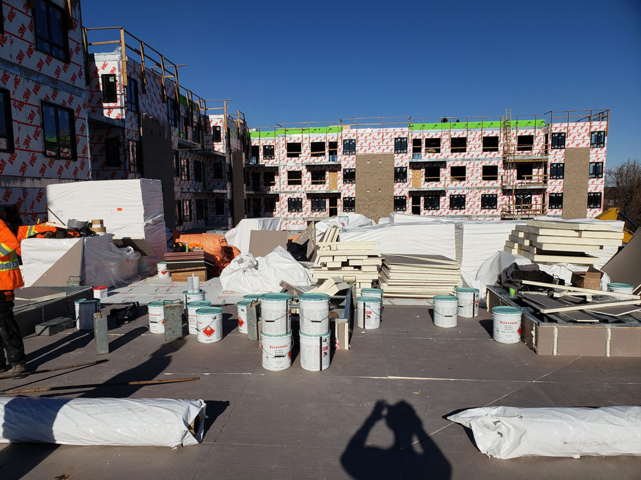 Below-Grade Waterproofing – Completed a 17,200 sq. ft. torch-applied SBS modified bitumen (Modbit) waterproofing system over the below-grade parking garage, utilizing a Soprema 2-ply membrane specification. This heavy-duty application was designed to provide robust, long-lasting moisture protection against sub-surface water ingress.